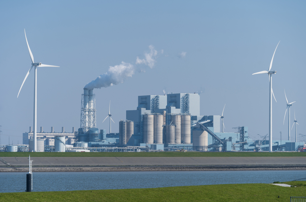 Centrale a carbone e pale eoliche. Eemshaven, Groningen, Paesi Bassi © Sander van der Werf/Shutterstock