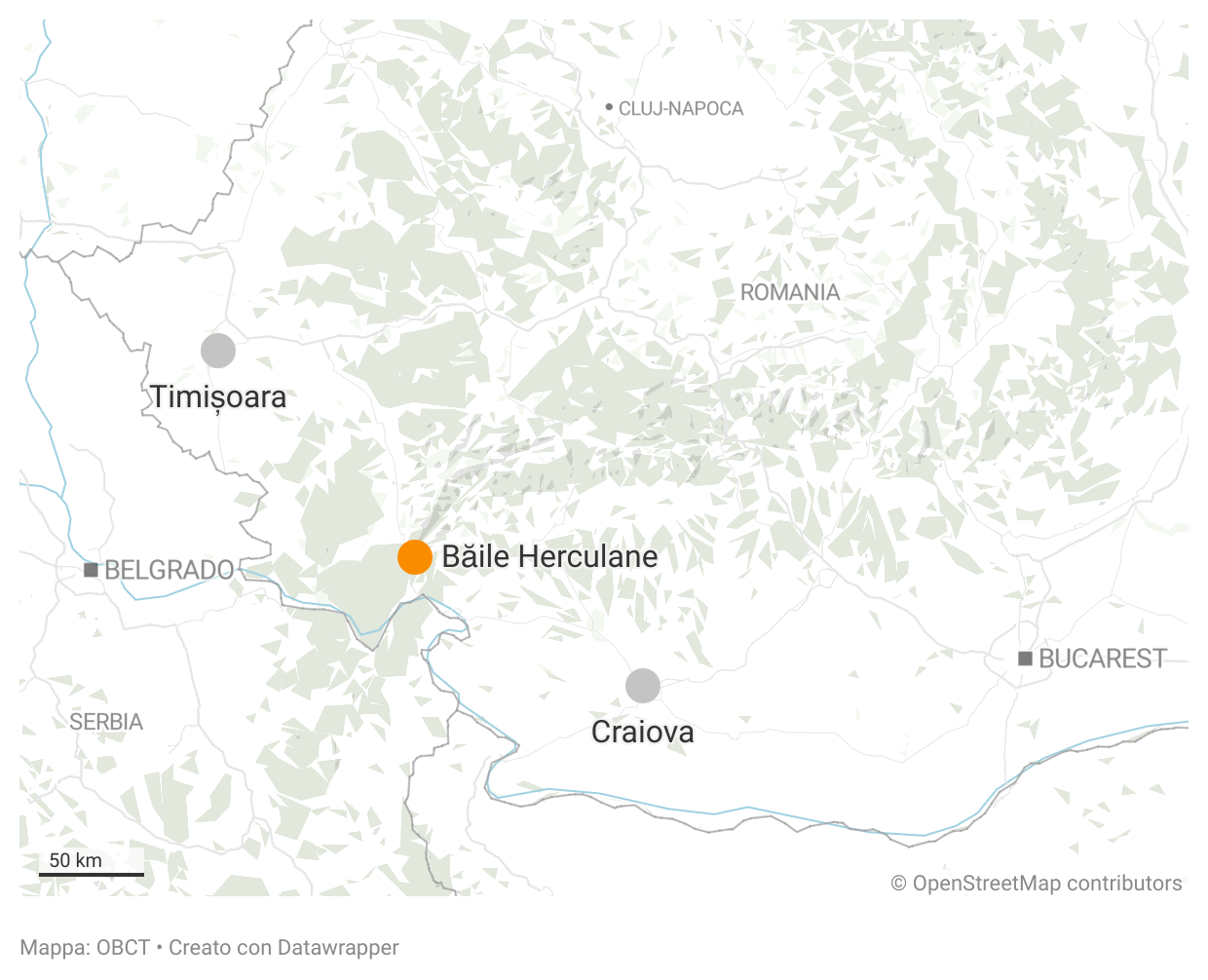 Siamo a mezz’ora di strada dalle Porte di Ferro, la gola che conduce il Danubio nella pianura della Valacchia. È un’area molto verde, dove abbondano i parchi naturali: a poca distanza da Băile Herculane si trovano ben cinque parchi nazionali, più altre aree protette. Ancora oggi si tratta di un’area relativamente remota: le città più vicine distano almeno due ore e mezza di macchina.