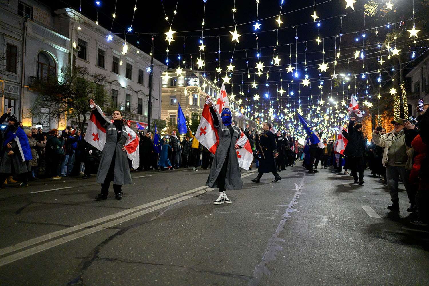 Tra questi nuovi eventi tenuti per chiedere nuove elezioni e il rilascio degli attivisti arrestati, il 22 dicembre si è tenuta una danza collettiva di guerra Khorumi sul viale Rustaveli. Ci sono state anche altre marce, principalmente per i georgiani etnici, ma anche una piccola marcia dell’unità per le minoranze etniche tenutasi il 26 dicembre. Anche il Capodanno è stato caratterizzato da manifestazioni fuori dal parlamento, con tavoli apparecchiati con snack e bevande per salutare il nuovo anno. Il 6 e 7 gennaio, i manifestanti hanno anche celebrato in piazza il Natale ortodosso georgiano.