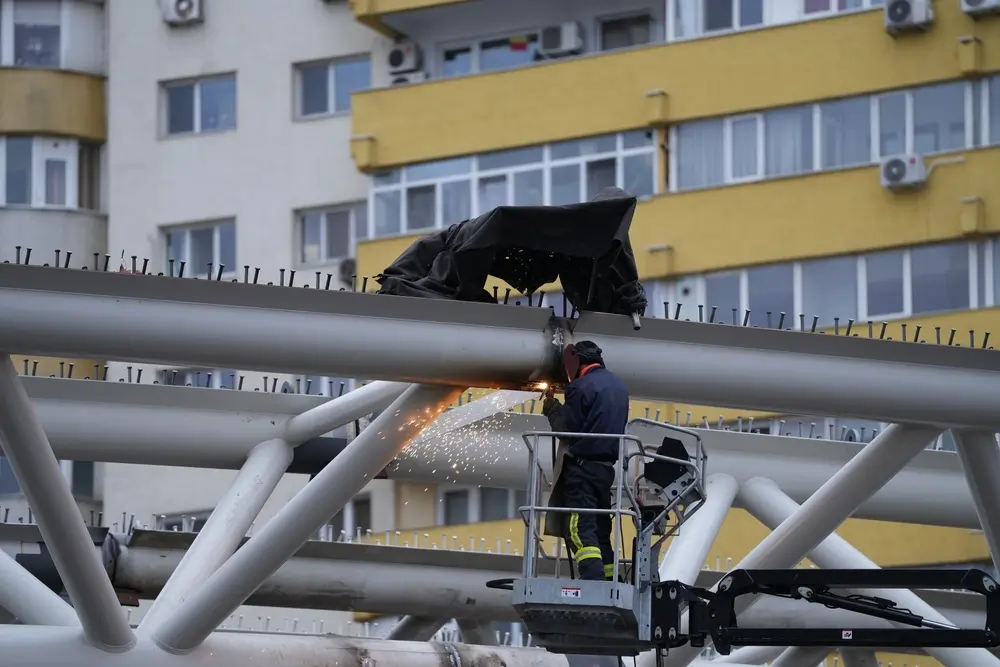 Bucharest, Romania. Construction of a bridge January ยฉ Cristi Dangeorge/Shutterstock